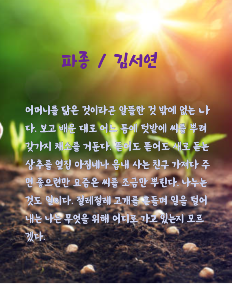 파종 / 김서연 - 제13회 정읍사 문학상 대상